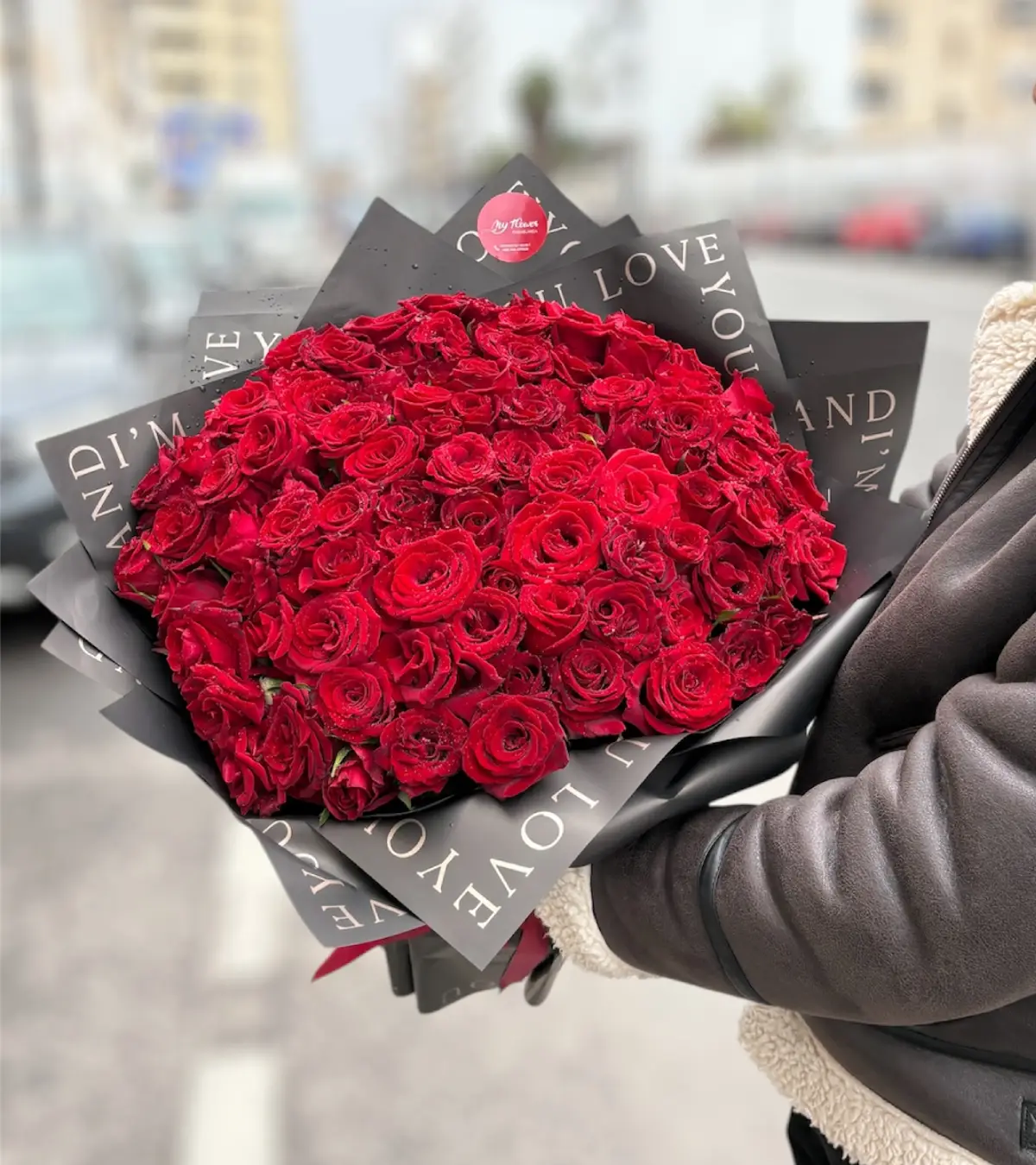 Accueil » Shop » Bouquet Passion 100 Roses Rouges – Élégance en Noir