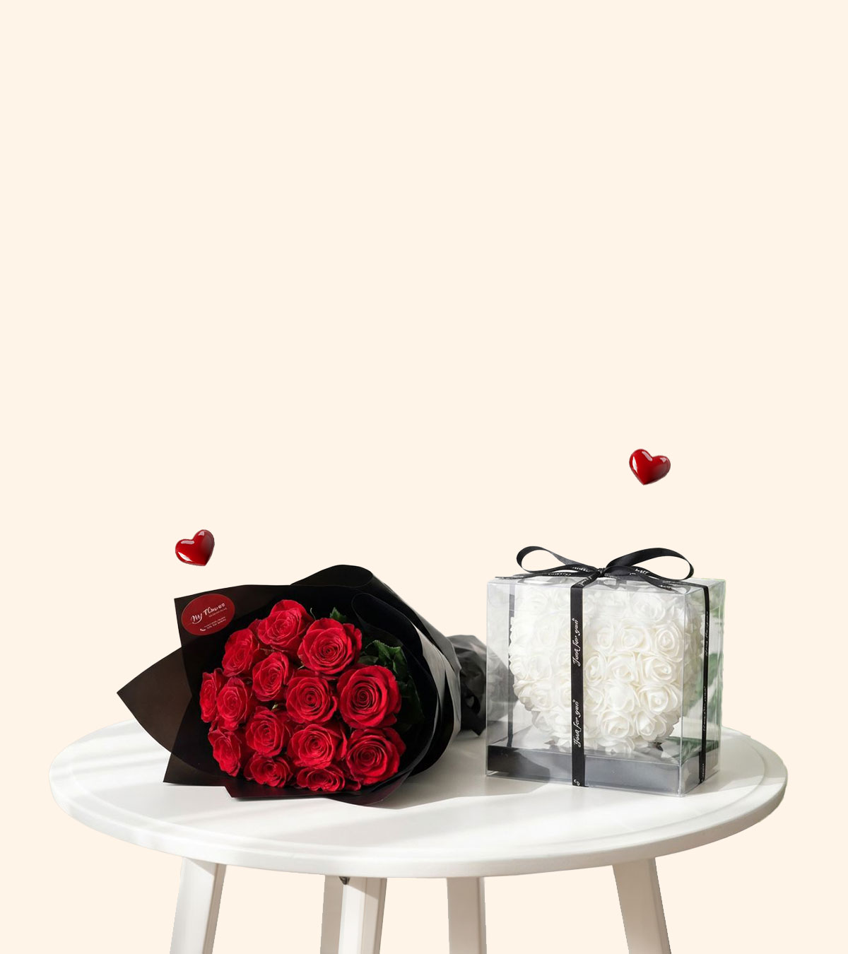 Duo Amour – Cœur Blanc Éternité & Bouquet 10 Roses Rouges - My flower Casablanca