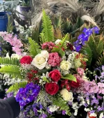 Ce bouquet captivant incarne l'amour et l'affection d'une manière tout à fait remarquable. Les fleurs blanches, délicatement disposées en forme de cœur, symbolisent l'innocence, la pureté et la tendresse des sentiments. Tandis que les fleurs rouges, vibrant de passion et d'énergie, apportent une touche de feu et d'intensité à cet arrangement floral.